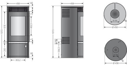 • Rauchrohranschluss: Ø 160 mm