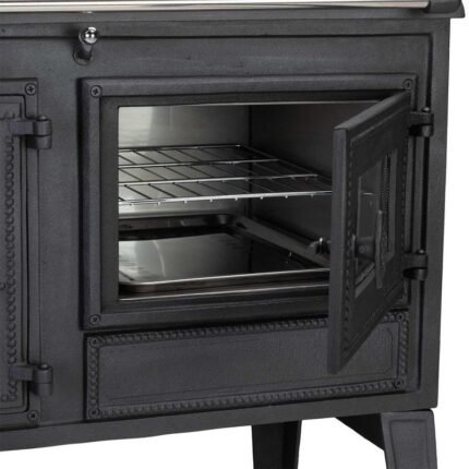 Der Ofen kombiniert klassisches Retro-Design mit moderner Verbrennungstechnik. Er verfügt über eine praktische Warmhalteplatte für Speisen oder Getränke, eine Scheibenspülung für freie Sicht aufs Feuer sowie eine selbstschließende Tür nach Bauart 1 für maximale Sicherheit.