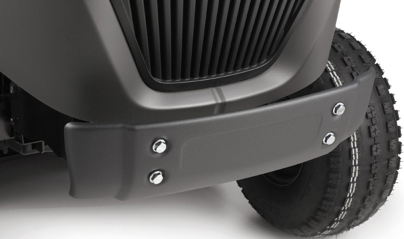 • Die serienmäßig im Lieferumfang enthaltene robuste Stoßstange schützt verlässlich die Motorhaube des Rasentraktors