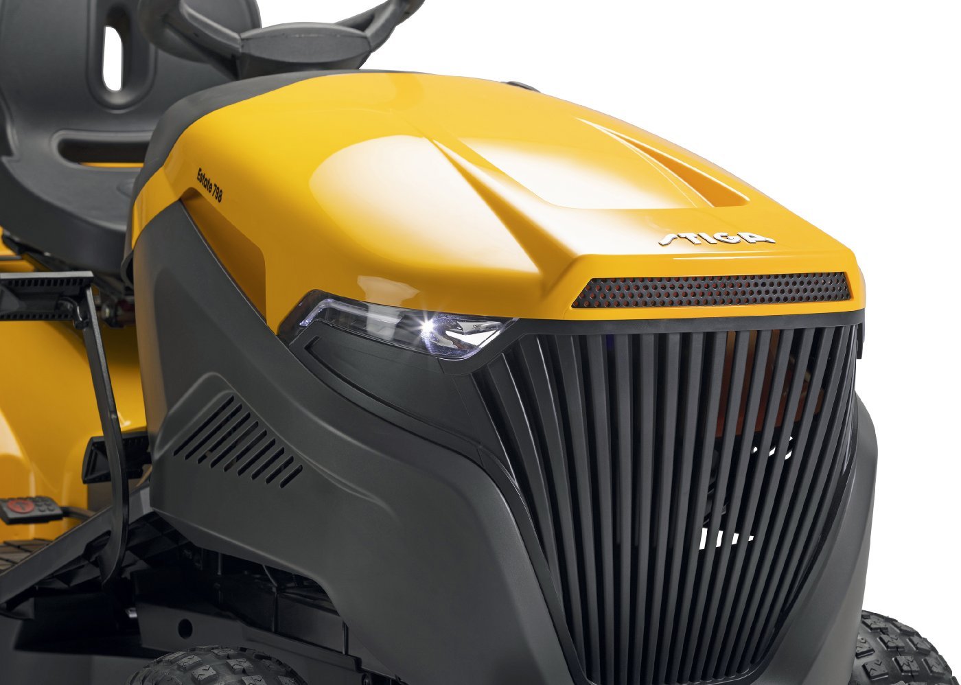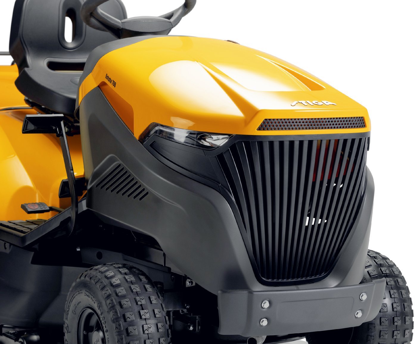 - Die serienmäßig im Lieferumfang enthaltene robuste Stoßstange schützt verlässlich die Motorhaube des Rasentraktors