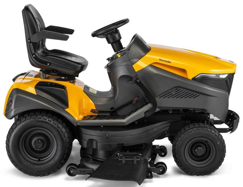 Der Tornado 9121 W ist ein anpassungsfähiger Traktor, der das Schnittgut entweder seitlich auswerfen oder mulchen kann. Ersteres eignet sich perfekt für das Mähen von informellen Außenbereichen und zugewachsenem Gras, letzteres kommt auf regelmäßig gemähten, offiziellen Rasenflächen zum Tragen.
