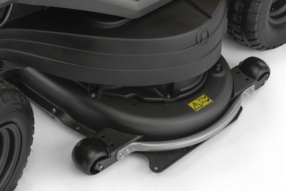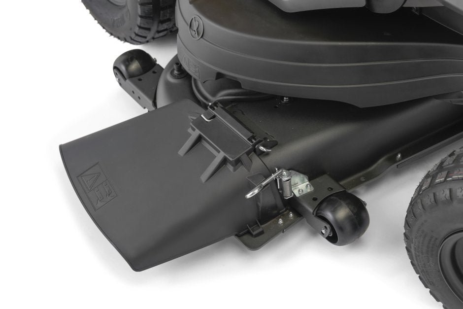 Zu den weiteren herausragenden Merkmalen gehören am Deck montierte Messräder, die beim Wenden an Steigungen ein Skalpieren verhindern, ein Waschanschluss für die einfache Reinigung unter dem Deck und eine gusseiserne Vorderachse, die für eine robuste Haltbarkeit sorgt.